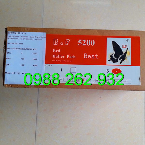Công ty Đại Hưng Minh nhập khẩu trực tiếp và phân phối pad chà sàn BF thương hiệu con Bướm (Butterfly) uy tín tại TPHCM. Công ty Đại Hưng Minh luôn cố gắng mang đến cho khách hàng những sản phẩm chất lượng, giá thành hợp lý giúp cho khách hàng tiết kiệm chi phí đầu tư, nâng cao hiệu quả công việc vệ sinh. Quý khách có nhu cầu mua pad chà sàn màu đỏ 16 inch BF 5200 xin vui lòng liên hệ công ty Đại Hưng Minh – 0988 262 932 hoặc xem trực tiếp sản phẩm tại địa chỉ 069 Tổ 2 Ấp 5 – Đông Thạnh – Hóc Môn – TPHCM. Rất hân hạnh được đón tiếp Quý khách! Chỉ đường tới công ty Đại Hưng Minh TẠI ĐÂY